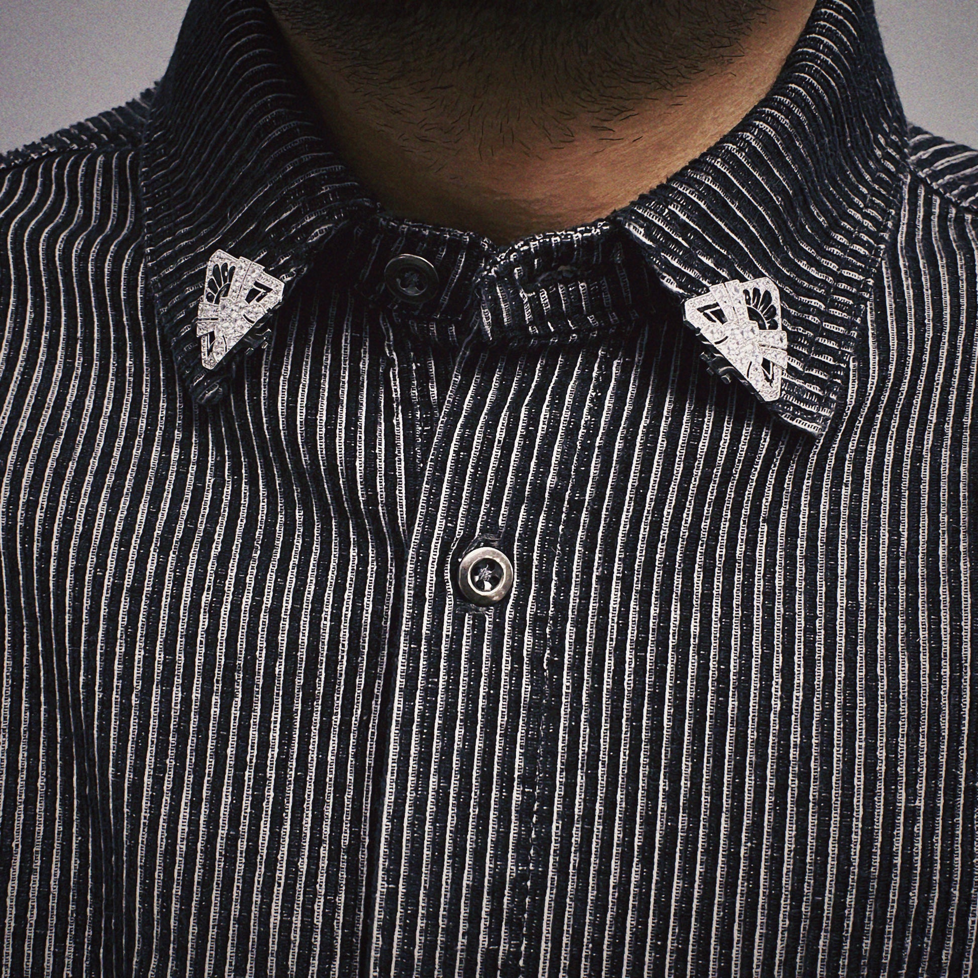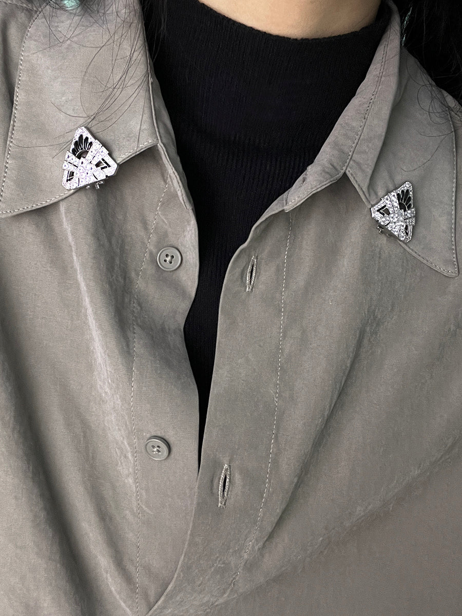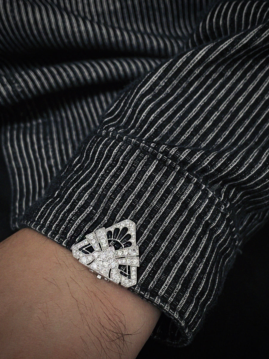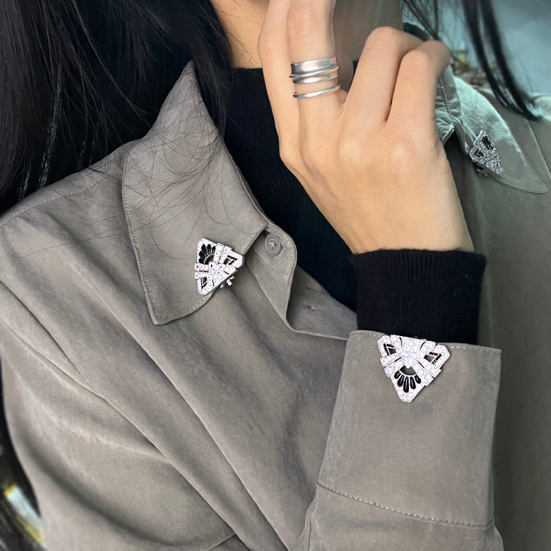A meticulously crafted reproduction of an Art Deco-era antique brooch, this piece exudes a rare, vintage Western charm. Designed with intricate detailing, it serves as a versatile accessory for collars or cuffs, adding a touch of timeless sophistication to any ensemble. Ideal as a unique, high-end gift for those who appreciate the elegance of vintage jewelry.