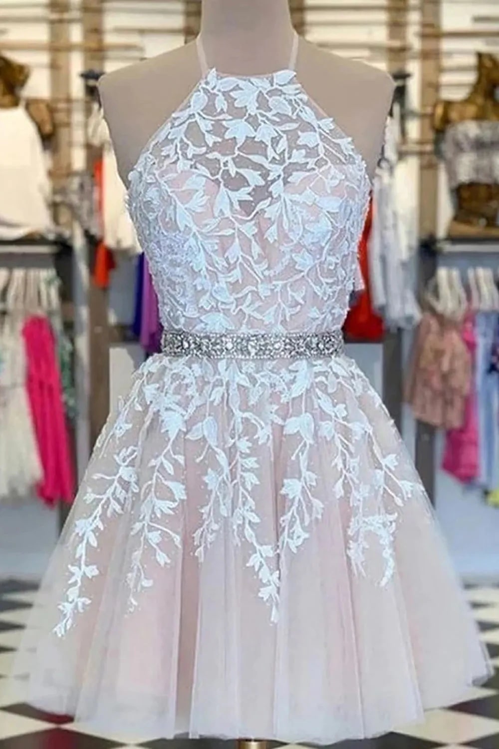 Yellow A Line Halter Backless Homecoming Dress